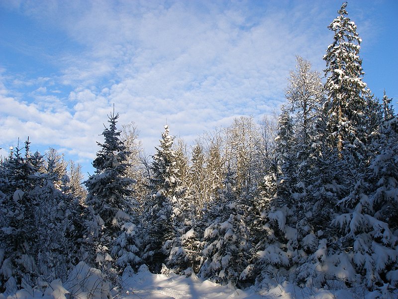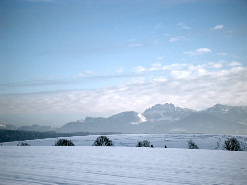 12 Felder hinter Obermoosen vor der verschneiten Kampenwand.